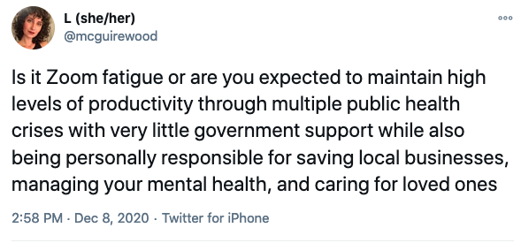 I spent 28 hours on video calls this week. Twenty-eight. Hours. Zoom, WebEx, Skype and FaceTime. Most of those hours were one-on-one or group meetings in which I was leading or actively participating, which meant I could not do the sanity-saving trick of keeping my own video off and folding laundry while listening. That’s a lot of hours of staring at this tiny laptop screen. Too many hours, in fact. Annie Dillard always rings in my head when I start calculating discouraging tallies like this: “the way we spend our days is, of course, the way we spend our lives.”