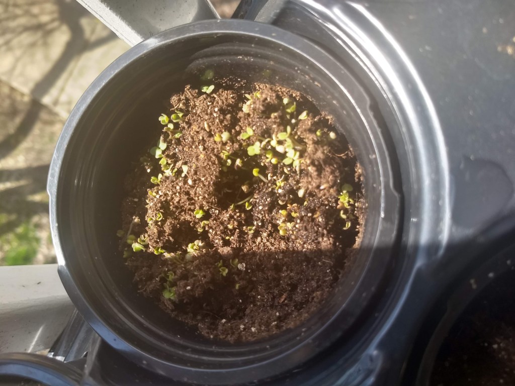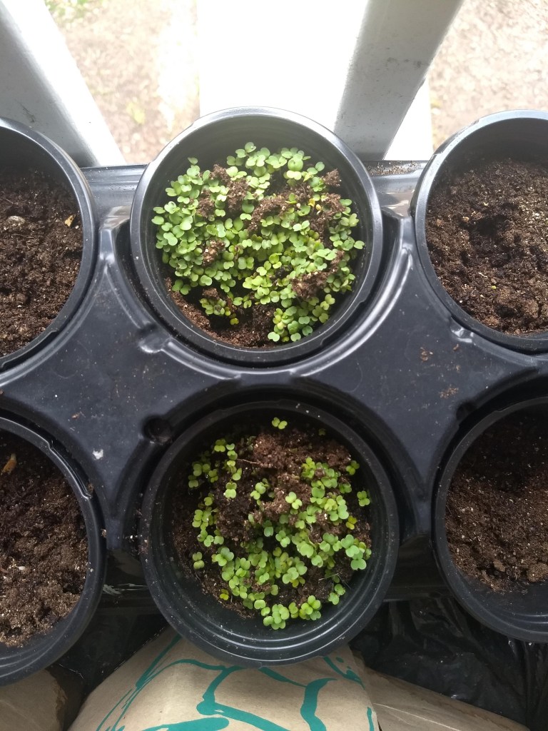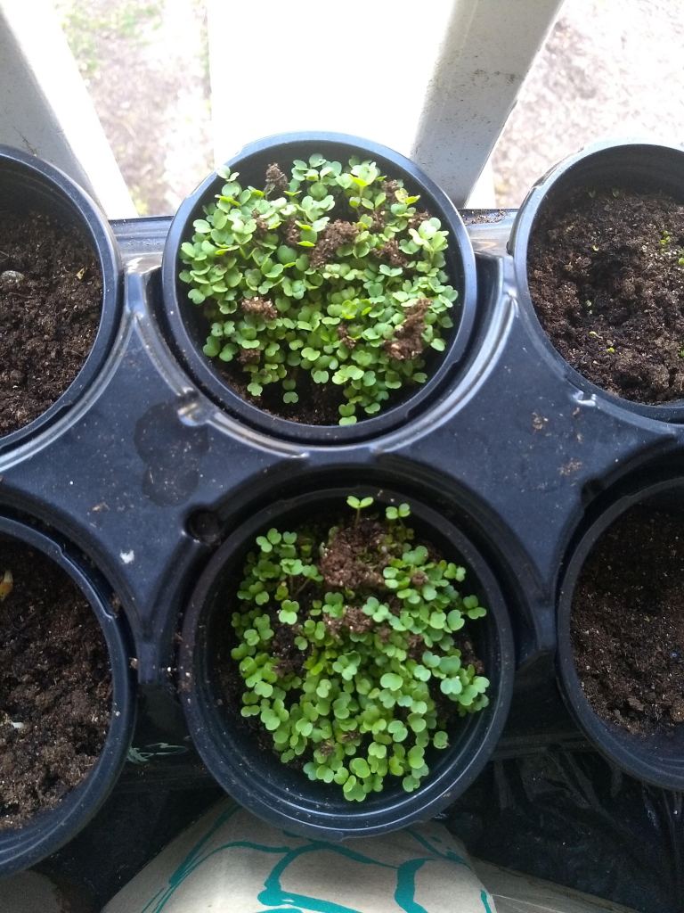 I’m a little wary of this fast growth, to be honest. Will their tender stems survive? Aren’t they too crowded in those tiny pots? Is arugula SUPPOSED to sprout so furiously? I don’t really like change, in general, and this daily change is a little unsettling.