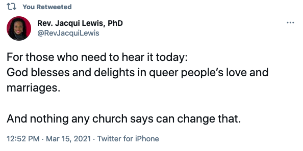 But here’s my take, as someone who deals in the implications of theological questions for a living: any institution that steadfastly refuses to hear, acknowledge, confess and repent of the kind of harm that modern religious institutions have wreaked on the people whom God loves, cherishes and delights in has absolutely no moral standing to make this kind of proclamation. None.