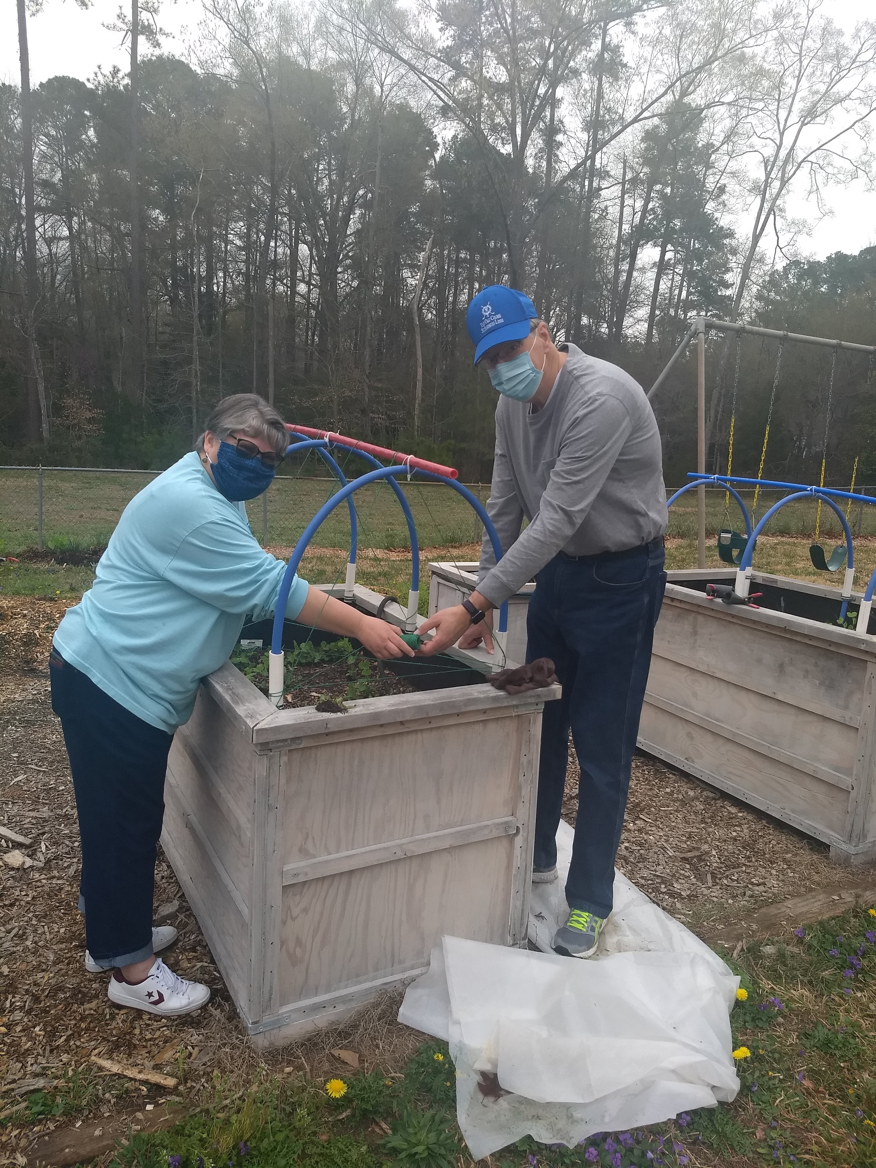 Of course, the pandemic is still raging and I’m only half-vaccinated, so we didn’t do much. But I did take them to the garden with me yesterday morning, where they got assigned the task of stringing trellises for the rapidly growing peas.