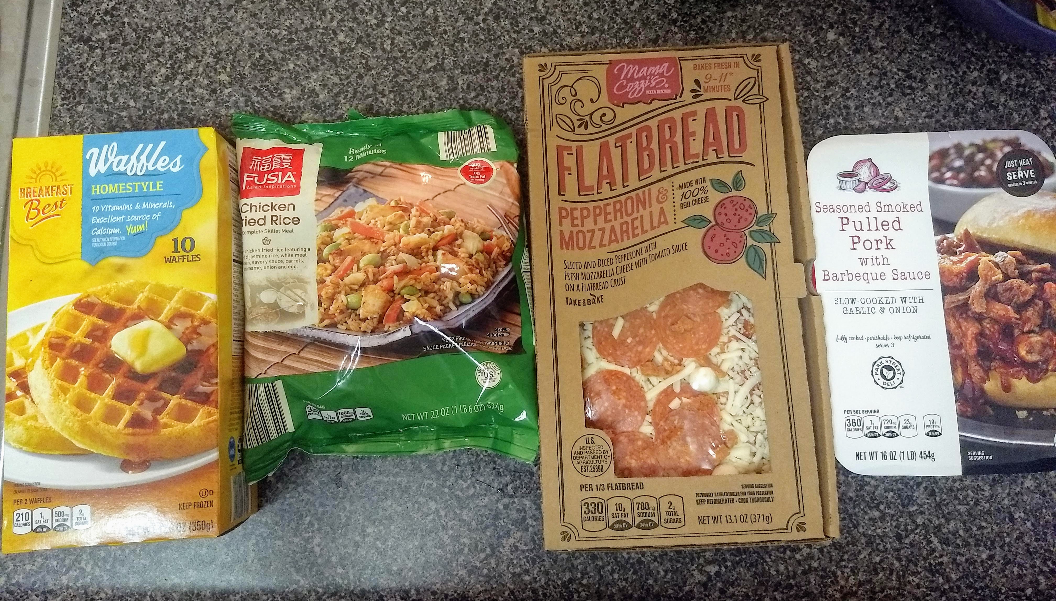 And as soon as Kendra offered that option, I felt the weight of the world lift from my shoulders. Well, of COURSE I can do that! Aldi has fun prepared foods, too: pizza and stir fry kits, barbecue trays and frozen waffles. It was like a whole new world opened in my brain. So simple. So silly.