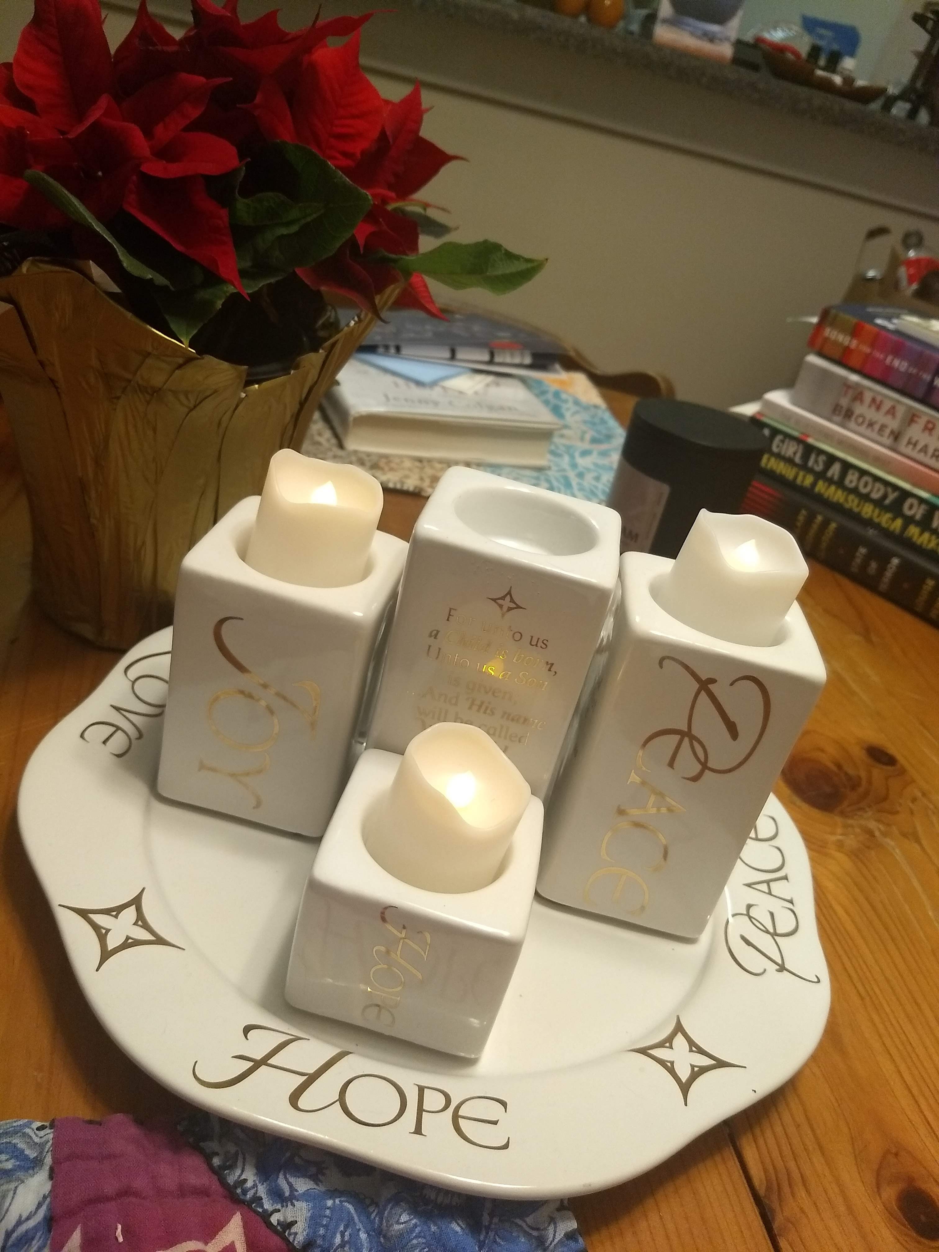 I tried to invite Advent candle liturgists and lighters, praying over my people and selecting unlikely pairings: retiree and college student! Someone on Zoom and someone in the room! No nuclear family pairings (I almost wrote an entire post about how much I loathe the nuclear family Advent candle lighting tradition because of how it marginalizes single people, childless people, folks whose families are far away or non-existent or simply don’t attend Sunday morning worship with them and how it is explicitly against the scriptural witness that folks who follow Jesus are called to leave their families and create new, kingdom ways of being community with one another…but I mostly spared you that rant, for now.). But my people are unused to being asked to do Sunday morning things before Sunday morning, and it just didn’t work. Instead, we’ve had some Zoom readers and some family readers and, yesterday, when I asked a married couple to do it together, they declined. One of them had already lit a different candle, and the other invited a college student to read along with her.